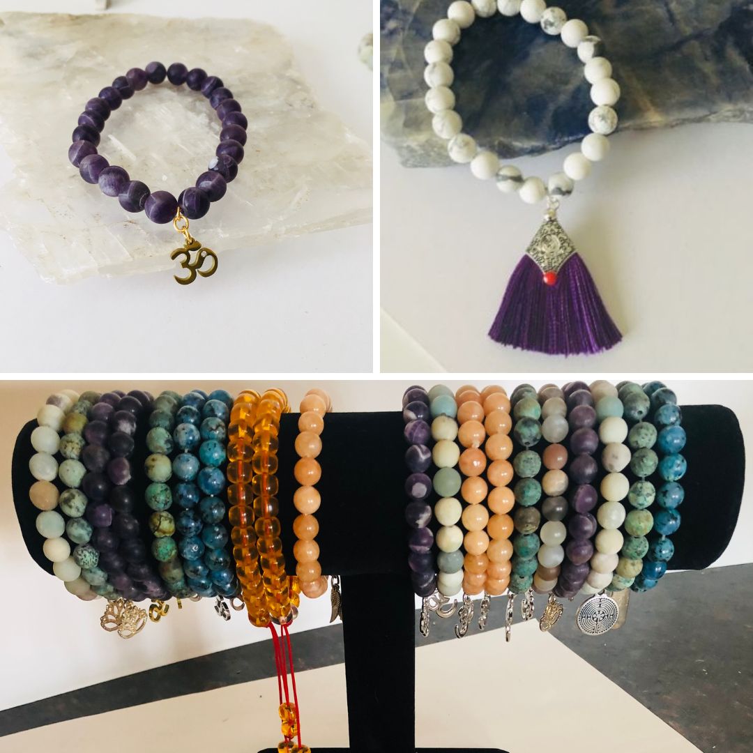 All gemstone bracelets are made with an elastic cord. Gemstones are 8mm, and charms are silver base metal and not sterling silver. Gemstone bracelets are infused with abundant Reiki energy. Offering you extra energy all day long.